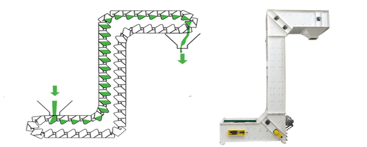Z型轉斗式提升機具有輸送量大,提升高度高,運行平穩可靠,壽命長等優點。本提升機適于輸送粉狀,粒狀及小塊狀的無磨琢性及磨琢性小的物料,目前多用于稱重包裝機的供料,色選機的供料及復選供料,自動化生產線的立體循環上下料。我們的產品目前正常運行在以下自動化生產產業中:化工醫藥業,PVC塑料顆粒,飼料行業,保健食品業,膨化食品業,糖果行業,干鮮果品業,寵物食品業,糧食精加工處理業,五金電料業,軍工制造業等等。