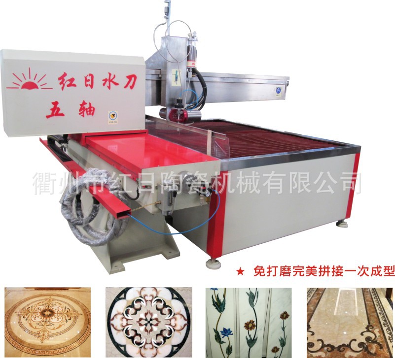數控水切割機(水刀)目前廣泛應用于瓷磚拼花、石材拼花,玻璃、金屬等行業的異形切割,可以使用CAD軟件繪圖來實現任意圖案的切割。五軸水刀帶角度切割,瓷磚、石材拼花切口免打磨可直接上膠水拼裝,降低勞動成本,減少生產環節。數控調節切割角度,效率更高,效果更好!五軸水刀能控制切割面的垂直度!機床整體鑄鐵,不變形、更耐用、更穩定!