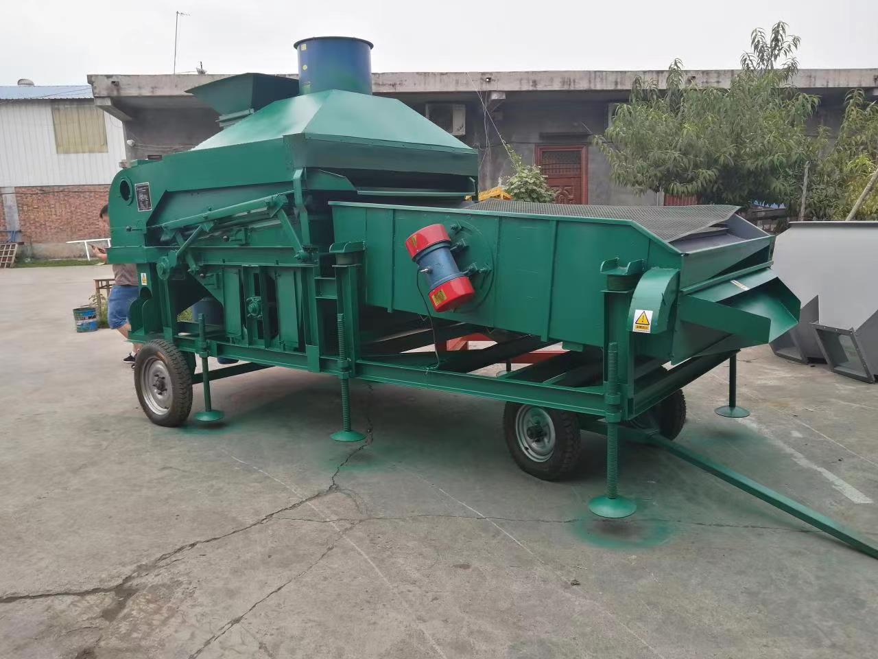 結構:本機由機架及運輸輪,傳動部分,主風機、重力分離臺、吸風機、吸風道、篩箱等組成,移動靈活,更換篩板方便、性能良好等特點。