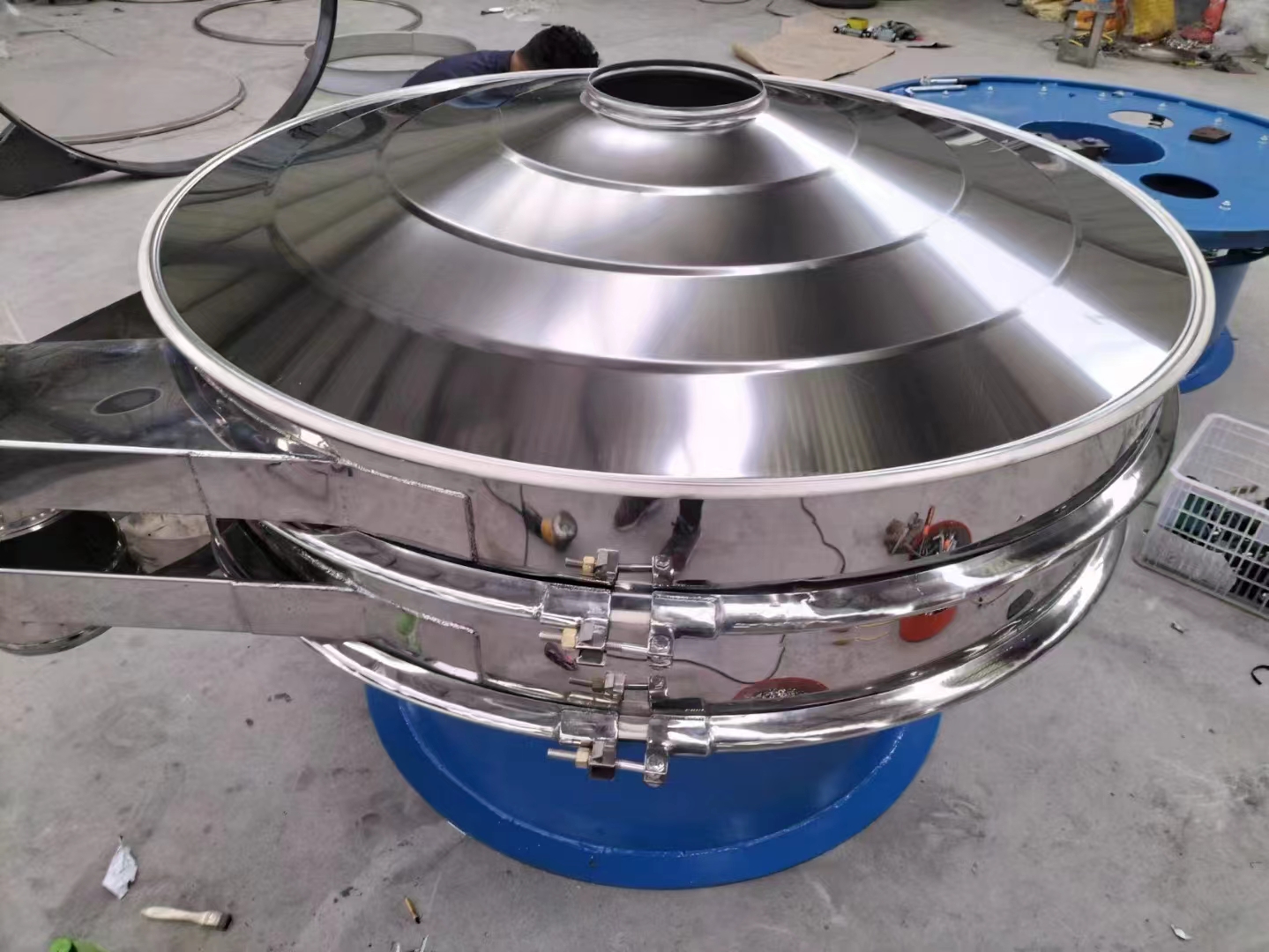 不銹鋼振動篩即三元次振動篩分過濾機又稱旋振篩,振動篩,圓振篩,過濾機。不銹鋼系列振動篩具有特殊性、高粘度、細粒物料篩分設備,主要用于篩分細粉、微粉、及干、濕物料等。