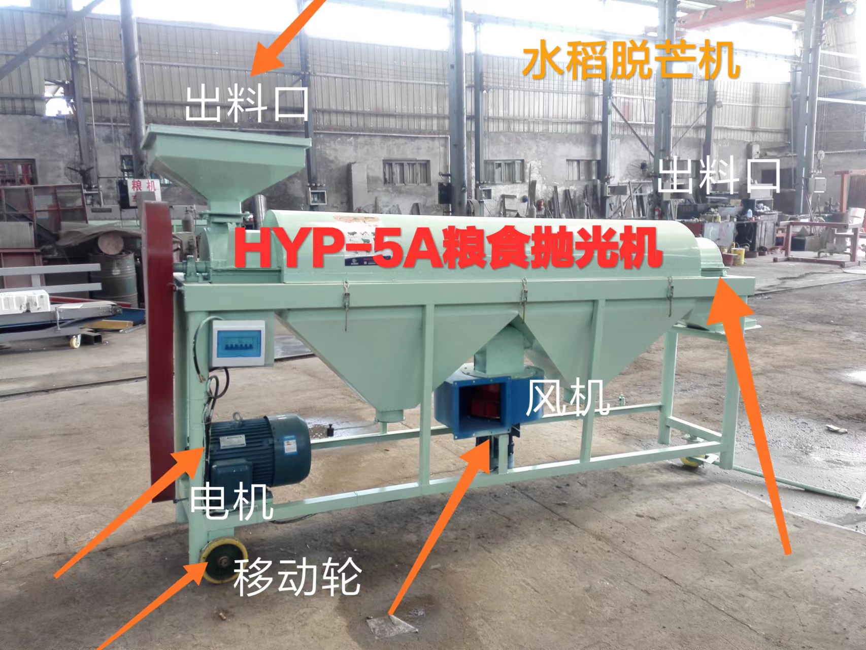 5噸水稻脫芒機,型號為:HYP-5A,為單軸樣式,機器2.8米長,拋光筒也達到2米多長,增加水稻的去芒行程,這樣除芒效果更好,此型為常用推薦型號。
