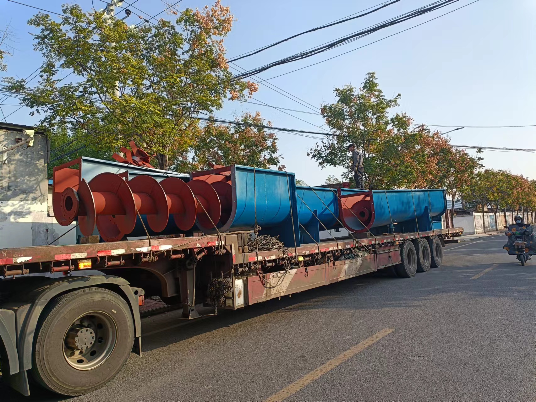 石老板您訂購的一套800-34米螺旋輸送機(jī)已經(jīng)開始裝車了,按照您的要求把機(jī)器外觀刷成藍(lán)色的了,車已經(jīng)裝好了我們?cè)跈z查有什么東西或者配件給您拉下沒,檢查好了可以發(fā)貨了,我們機(jī)器出廠前都是調(diào)試好的,所以您回去就可以使用了,預(yù)計(jì)4-6天可以到哪您那里,請(qǐng)您保持手機(jī)暢通,祝您生活愉快發(fā)大財(cái)。